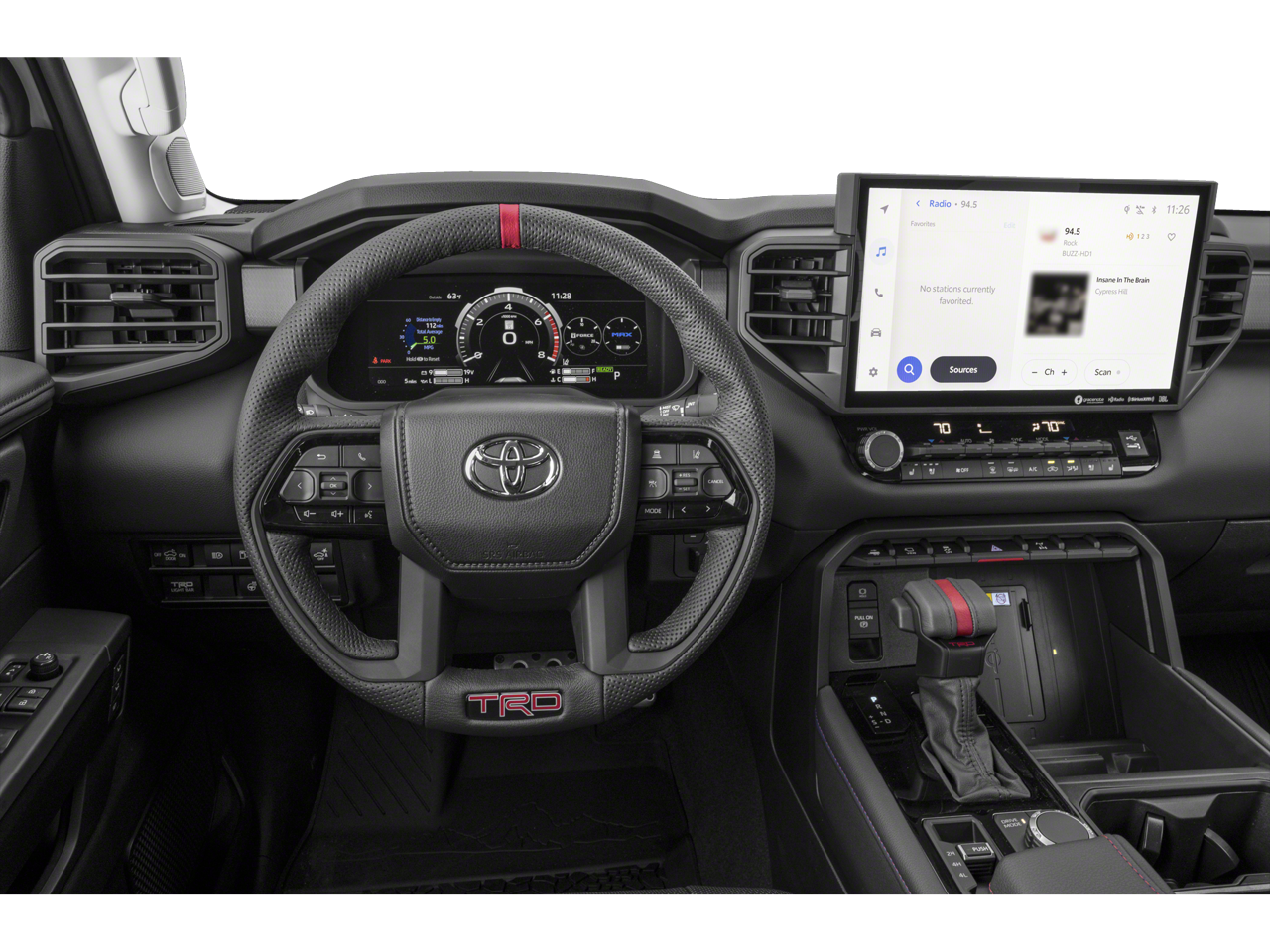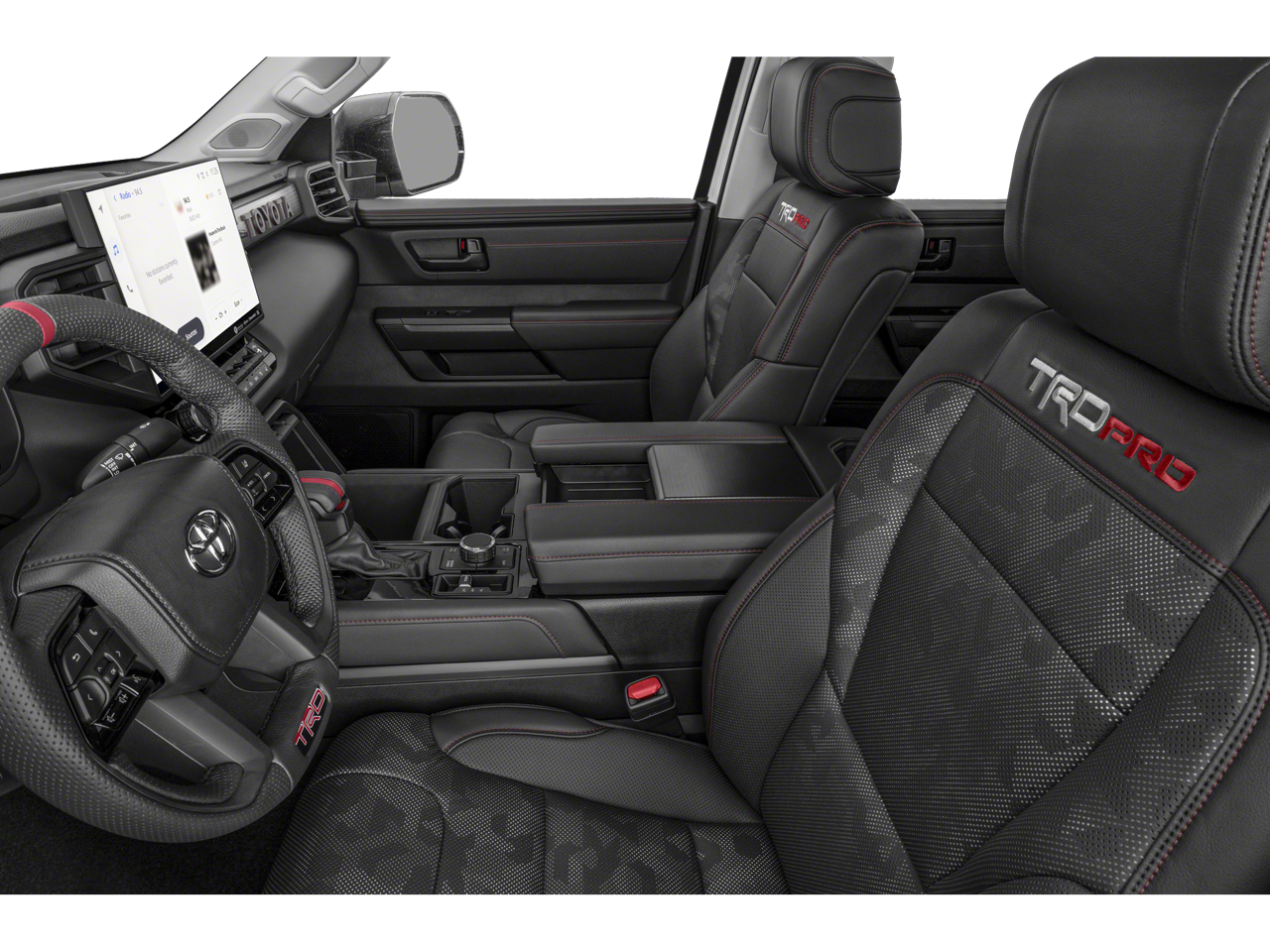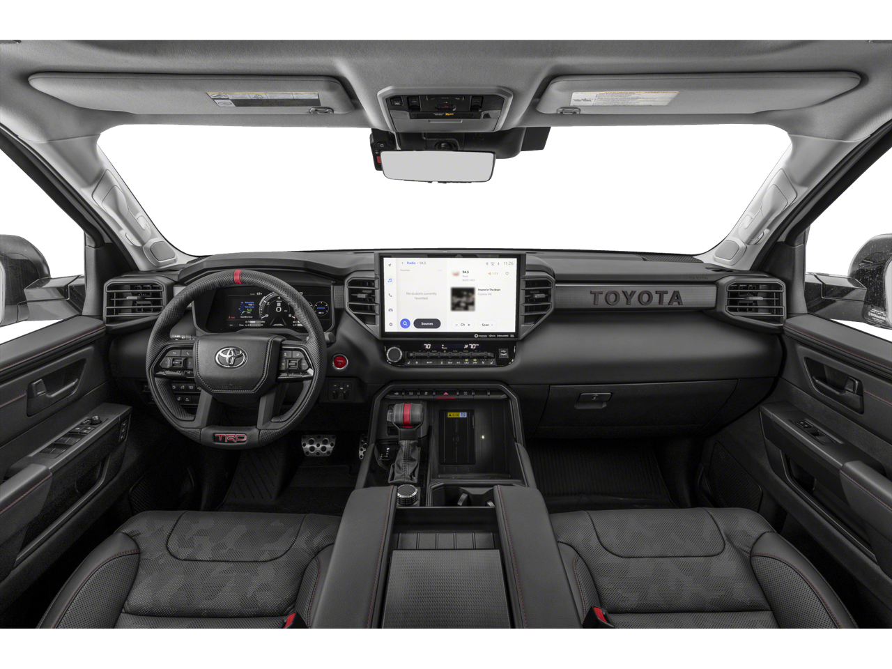 This 2023 Toyota Tundra Hybrid TRD Pro in Magnetic Gray Metallic comes with the following features: 3.4L V6 10-Speed Automatic 4WD 3.4L V6 Towing Technology Package, TRD Pro Package (400W/120V AC Rear Seat & Bed Power Supply, Black Dual Exhaust Tips w/Debossed TRD Pro Logo, Front & Rear Mud Guards, Heated Color-Keyed Outside Mirrors, LED Lightbar w/Fog & Marker Lights, Multi-Terrain Back Monitor, Panoramic View Back Monitor, Power Panoramic Roof, Qi-Compatible Wireless Smartphone Charger, Smoked-Finish Premium LED Headlights & DRL, and TRD Pro Heated Leather-Trimmed Steering Wheel), 3.4L V6, 12 Speakers, 3.31 Axle Ratio, 4-Wheel Disc Brakes, ABS brakes, Air Conditioning, Alloy wheels, AM/FM radio: SiriusXM, Apple CarPlay/Android Auto, Auto High-beam Headlights, Auto-dimming door mirrors, Auto-dimming Rear-View mirror, Automatic temperature control, Brake assist, Bumpers: body-color, Delay-off headlights, Driver door bin, Driver vanity mirror, Dual front impact airbags, Dual front side impact airbags, Electronic Stability Control, Emergency communication system: Safety Connect (10-year trial), Front anti-roll bar, Front Bucket Seats, Front Center Armrest, Front dual zone A/C, Front fog lights, Front reading lights, Front wheel independent suspension, Fully automatic headlights, Garage door transmitter: HomeLink, Heated & Ventilated Front Bucket Seats, Heated door mirrors, Heated front seats, Heated steering wheel, Illuminated entry, Knee airbag, Leather Shift Knob, Low tire pressure warning, Memory seat, Navigation System, Occupant sensing airbag, Outside temperature display, Overhead airbag, Overhead console, Panic alarm, Passenger door bin, Passenger vanity mirror, Power door mirrors, Power driver seat, Power moonroof, Power passenger seat, Power steering, Power windows, Radio data system, Radio: Premium Audio w/JBL, Rear reading lights, Rear seat center armrest, Rear step bumper, Rear window defroster, Remote keyless entry, Security system, SofTex Seat Trim, Speed control, Speed-sensing steering, Split folding rear seat, Sport steering wheel, Steering wheel mounted audio controls, Tachometer, Telescoping steering wheel, Tilt steering wheel, Traction control, Trip computer, Turn signal indicator mirrors, Variably intermittent wipers, Ventilated front seats, Voltmeter, and Wheels: 18 x 8 Black BBS Forged Aluminum.